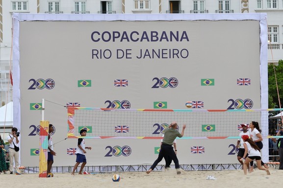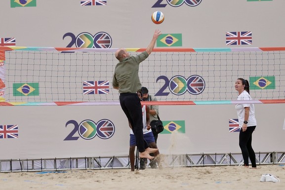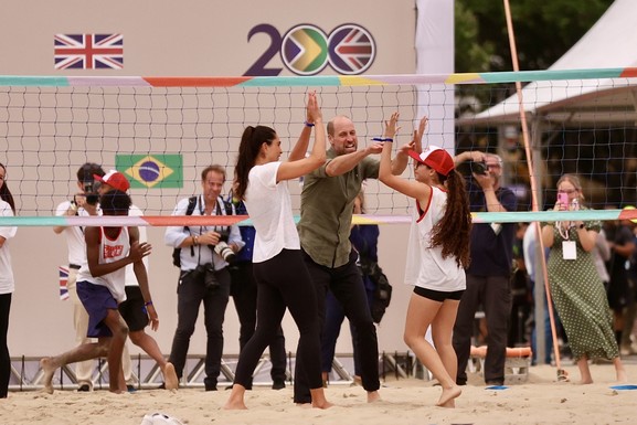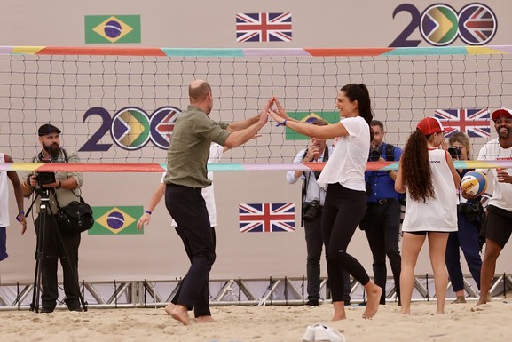 Príncipe William se arriscou no vôlei de praia nas areias de Copacabana, na tarde da última segunda-feira (3). O membro da realeza britânica participou de atividades com crianças participantes do projeto Brotinho, vinculado ao Corpo de Bombeiros do Rio de Janeiro, e do Instituto Levante, mantido pela jogadora de vôlei de praia Carol Solberg, filha da ex-jogadora de vôlei Isabel Salgado.
